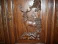 Die Vorderfront der mittleren Tür ist mit einem geschnitztem Hirsch versehen. Schloß und Schlüssel sind vorhanden.